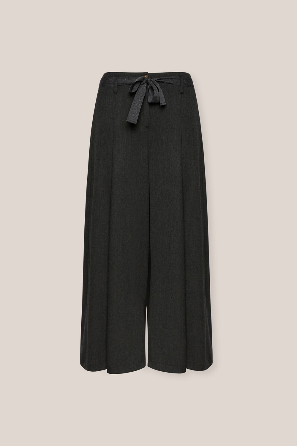 Брюки-кюлоты из эластичной поливискозы. Свободный крой, разрезы на брючинах. Мягкий пояс из хлопка с люрексом подчеркивает талию и завершает образ.