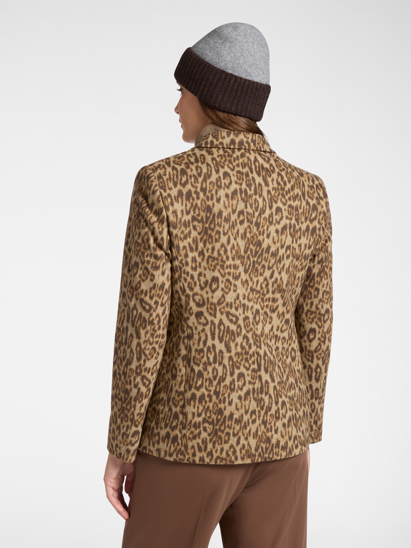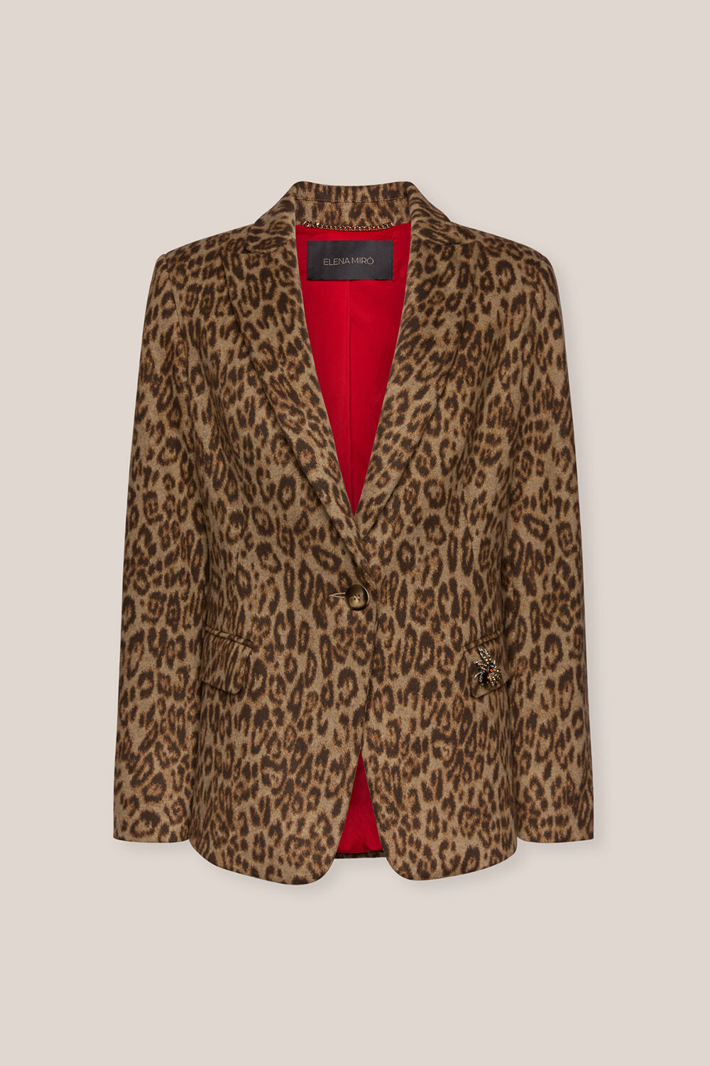 Однобортный жакет прямого кроя. Яркий анималистичный принт, подкладка контрастного красного цвета, лацканы, накладные карманы. Оригинальное и изысканное изделие. Последний элегантный штрих для вашего образа.