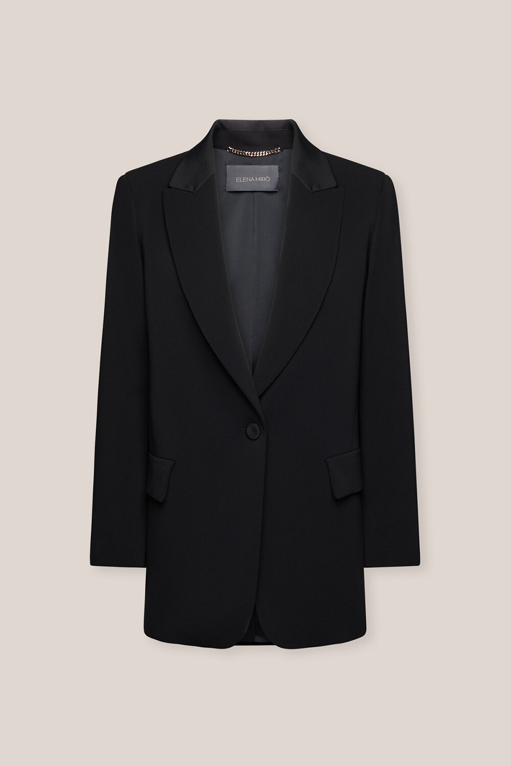 Жакет прямого кроя. Современный дизайн, лаконичный крой. Лацканы из полу-глянцевой ткани. Идеально подходит для повседневного или формального образов.
