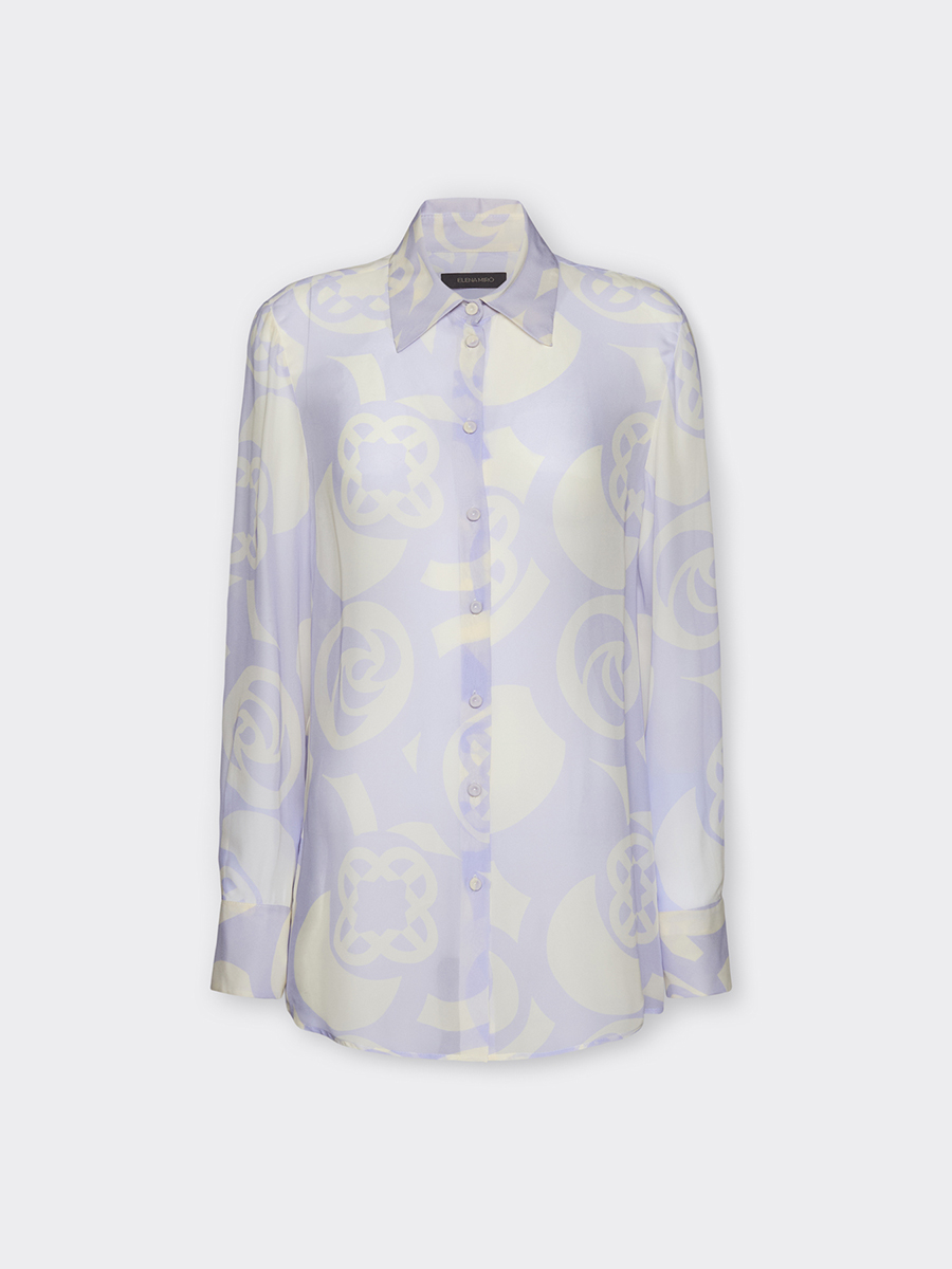 Блузка из вискозного жоржета. Монохромный принт с монограммой бренда выгодно выделяет изделие. Свободный крой, длинный рукав, пуговицы в тон и манжеты с планкой. Элегантное современное изделие на каждый день.