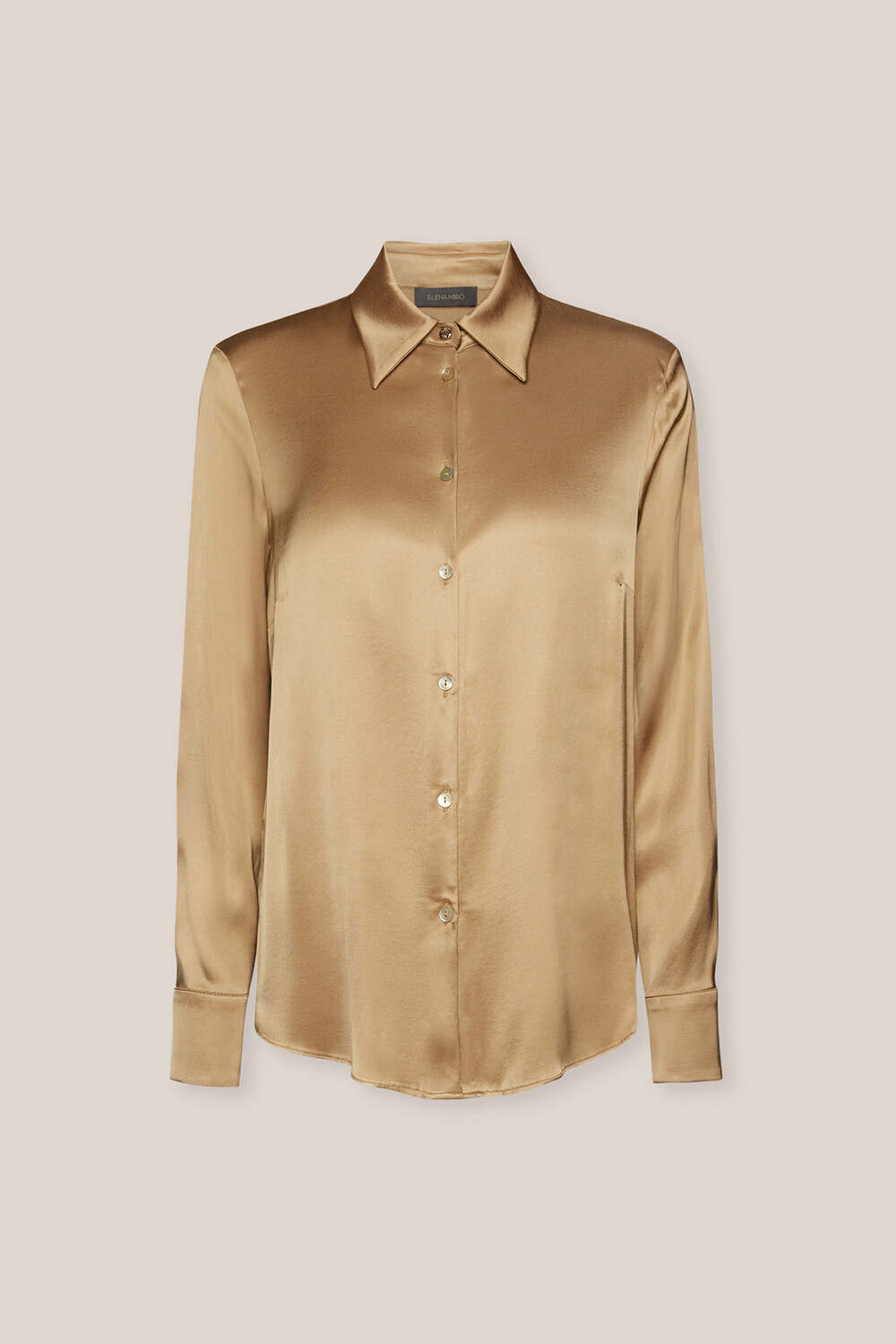Рубашка мужского кроя из вискозного экологичного атласа. Небольшие пуговицы с монограммой, приятные цвета. Маст хев в каждом гардеробе.