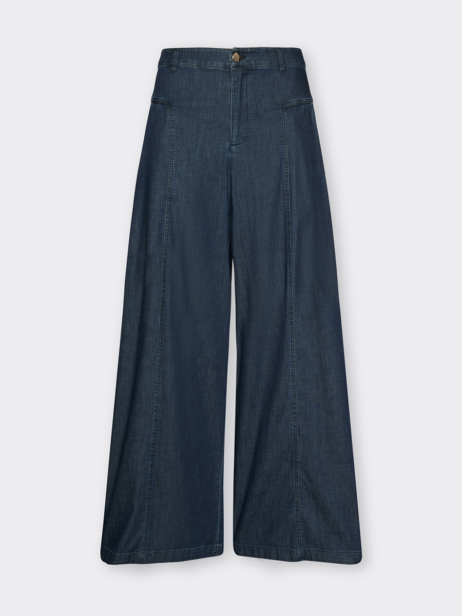 Широкие джинсы-палаццо из шамбре темно-синие